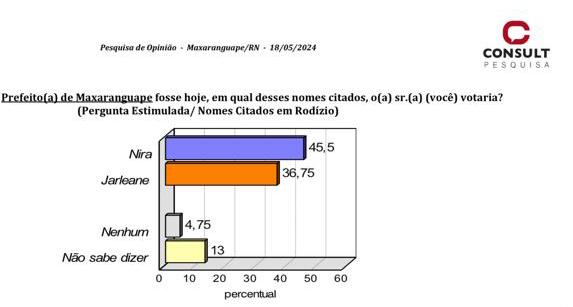 A Consult Pesquisas, através do Blog de Gustavo Negreiros, trouxe pesquisa de intenção de votos publicada, hoje, (27/05), realizada em Maxaranguape, e os números trouxeram uma grande surpresa.