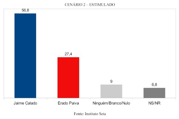 Na pesquisa estimulada (cenário 2), Jaime Calado teria 56,8 % dos votos, contra 27,4% de Eraldo Paiva.