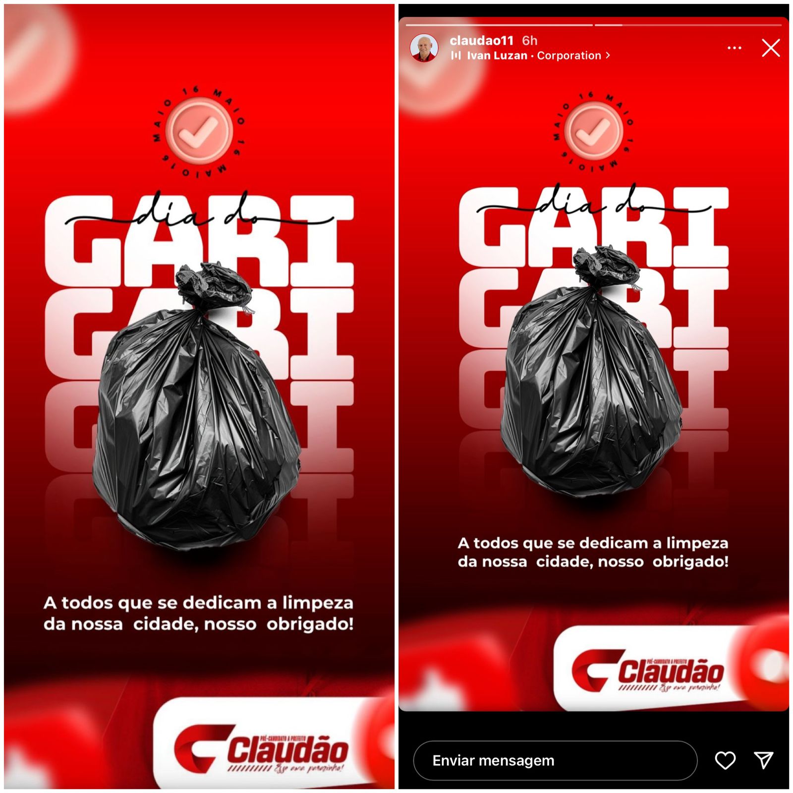 Hoje 16 de maio é o dia do Gari, todos os pré-candidatos e políticos do brasil usaram suas redes sociais para homenagear a classe trabalhadora.