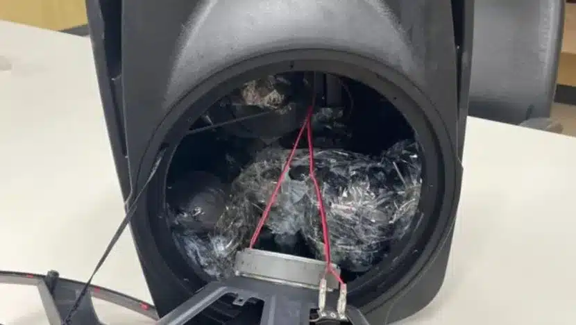A droga estava camuflada no interior de uma caixa de som e foi encontrada graças ao trabalho dos cães detectores de drogas pertencentes ao canil da PF.