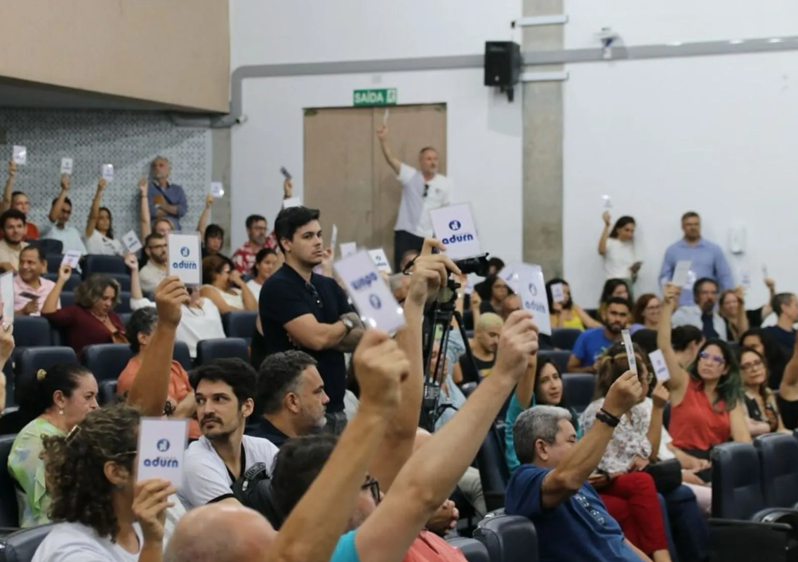 A decisão ocorreu em assembleia híbrida realizada na tarde desta terça-feira (21). Segundo o Adurn, mais de 400 docentes participaram da reunião. Foram contrários à proposta do Governo 222, enquanto 182 votaram favoráveis. Outros 10 docentes se abstiveram na votação.