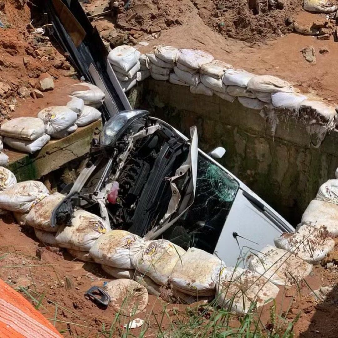 VÍDEO: Veja o momento em que motorista invade área de obra na Zona Norte de Natal e carro cai em cratera
