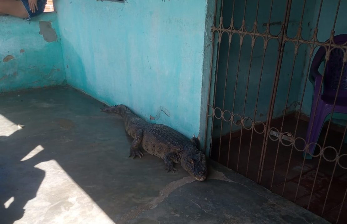 SUSTO: Jacaré invade casa e é retirado pelo Corpo de Bombeiros, em Ceará-Mirim