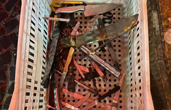 Foram apreendidos mais de 160 objetos perfurocortantes nos pontos de bloqueio e revista montados em todos os acessos à praia.
