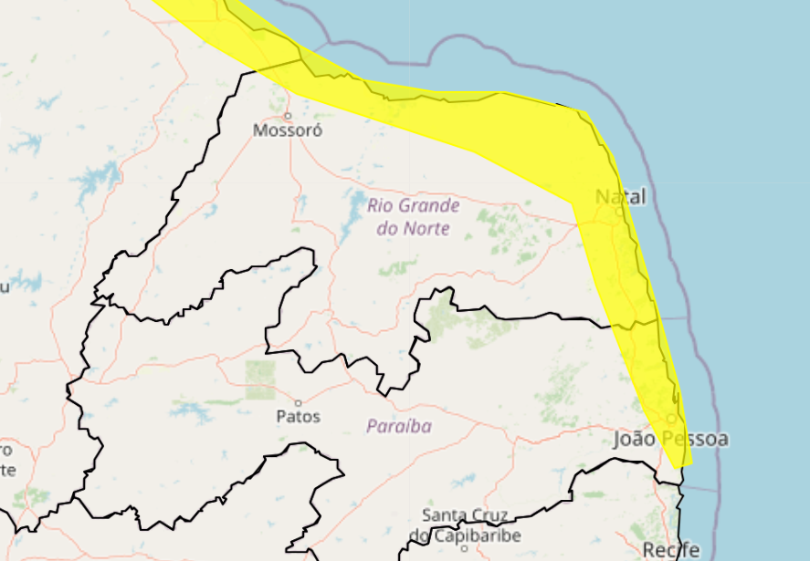 O Instituto Nacional de Meteorologia (Inmet) emitiu nesta quarta-feira (1º) um alerta de chuvas intensas para 56 cidades, principalmente no litoral do Rio Grande do Norte.