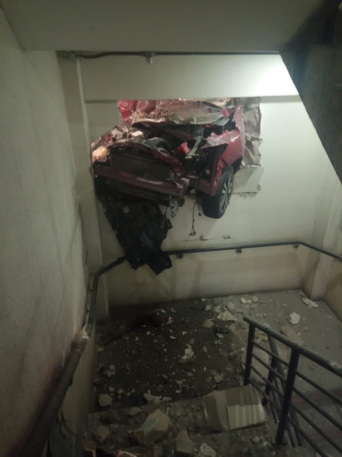 A motorista do veículo sofreu um mal súbito e perdeu o controle, batendo contra a parede.