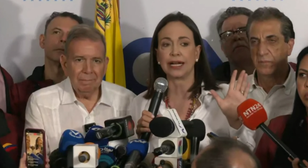 No discurso após o anúncio do CNE, foi Corina quem mais falou. Ela disse que, nos próximos dias, vão “continuar denunciando”. “Nós vamos combater com a verdade. É impossível o que disseram”, disse. “Temos informação e temos as atas”.