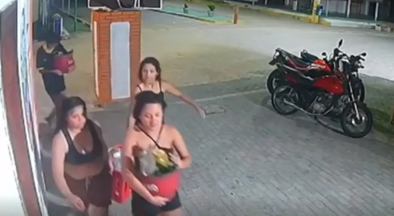 Pelo vídeo, é possível ver claramente quem são, visto que o local, apesar de estar a noite, é bem iluminado. Dá para ver o momento em que elas forçam a porta do quiosque e levam as bebidas, em barris de cerveja.