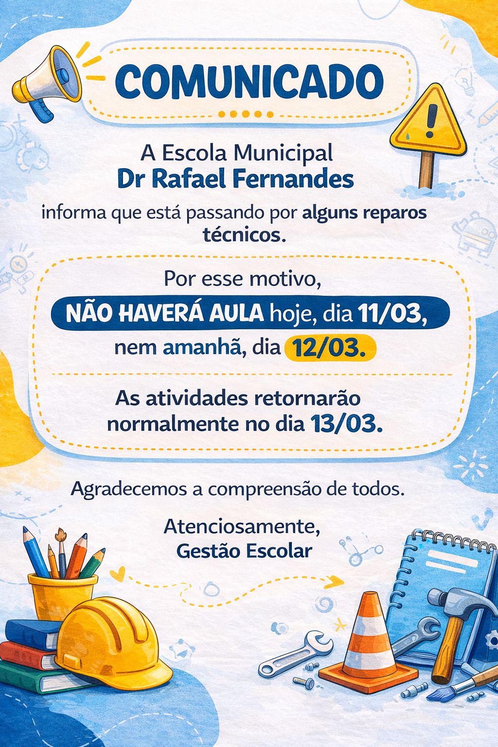 A suspensão das aulas na Escola Rafael Fernandes expõe um problema grave de planejamento na gestão municipal. A reforma da unidade escolar, amplamente anunciada pela prefeita, não foi concluída dentro do prazo, obrigando a escola a interromper as atividades e prejudicando diretamente alunos, professores e famílias.