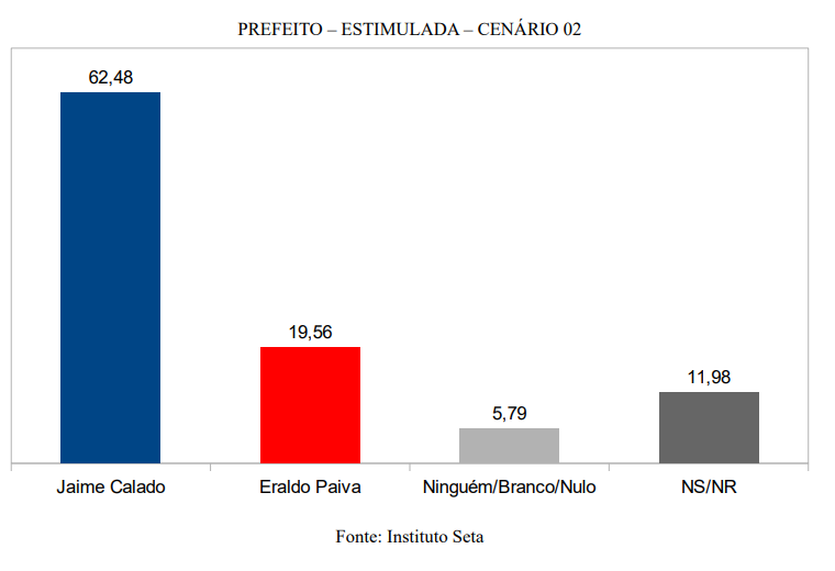 A PESQUISA SETA/BG/SÃO GONÇALO também avaliou um segundo cenário estimulado, apenas com os nomes de Jaime Calado e Eraldo Paiva.