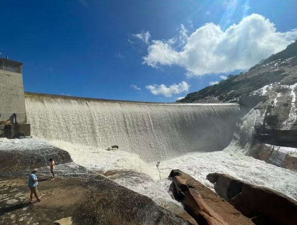 Muita gente foi ver de perto a sangria do açude Gargalheiras, em Acari, na região do Seridó do Rio Grande do Norte, neste fim de semana. Diante do chamado “véu de noiva”, a movimentação é intensa durante todo o dia. Todos querem contemplar o momento e registrar com fotos.