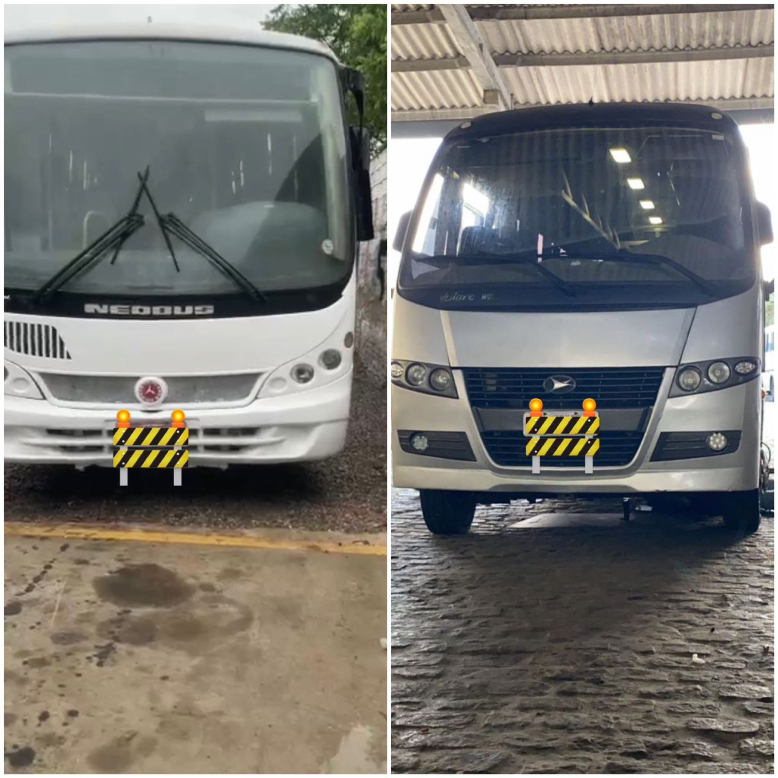 Na imagem os ônibus locados para prefeitura que estão sem pagamento