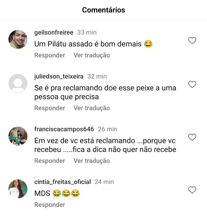 Em outro comentário a internauta fala: "POIS EU ACHEI BOM O QUE EU RECEBI, PEIXE GRANDE DA PESTE", outra internauta escreveu: "MUITO FÁCIL, DÊ PARA OUTRA PESSOA."