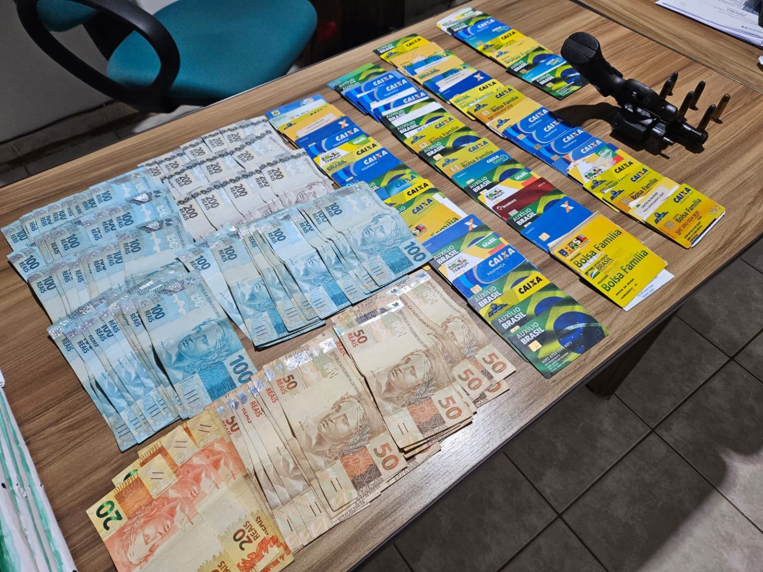 Na ocasião, foram apreendidos 80 cartões de crédito e benefícios do Governo Federal, um revólver calibre .38 municiado e uma soma de dinheiro no valor de R$ 9.500,00. O suspeito não estava na residência no momento da abordagem, mas foi identificado e será indiciado pela prática dos crimes de estelionato e posse irregular de arma de fogo.