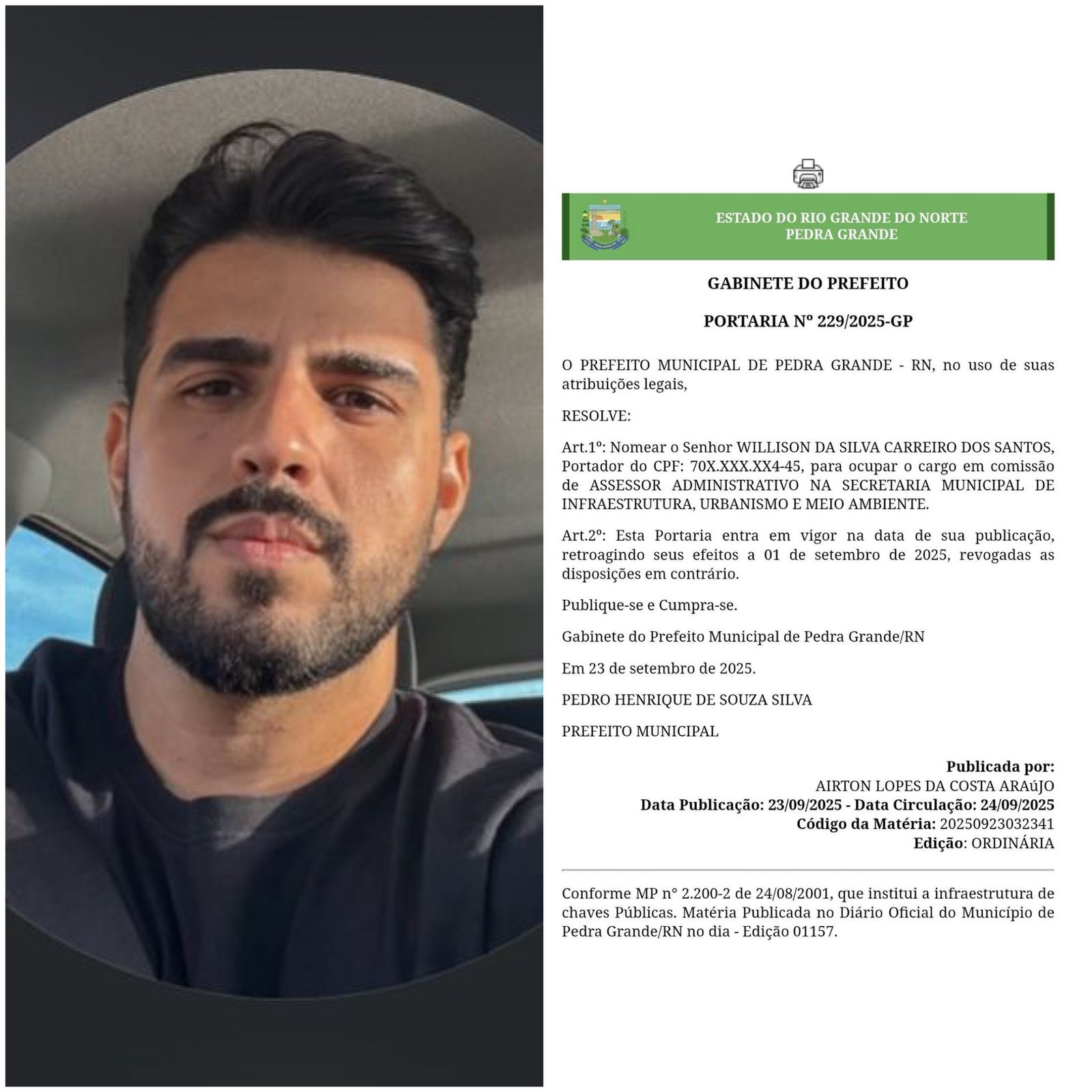 PEDRA GRANDE: Enquanto o prefeito fala em “crise”, quem ganha emprego é o companheiro do marketing da prefeitura.